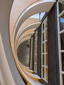 Vorige week maakte ik deze foto. Een trappenhuis. Hoewel, waar is de trap? En kijk je naar boven of naar beneden. Of juist recht vooruit? En wat zit er achter de ramen rechts? Ben je binnen of buiten?
